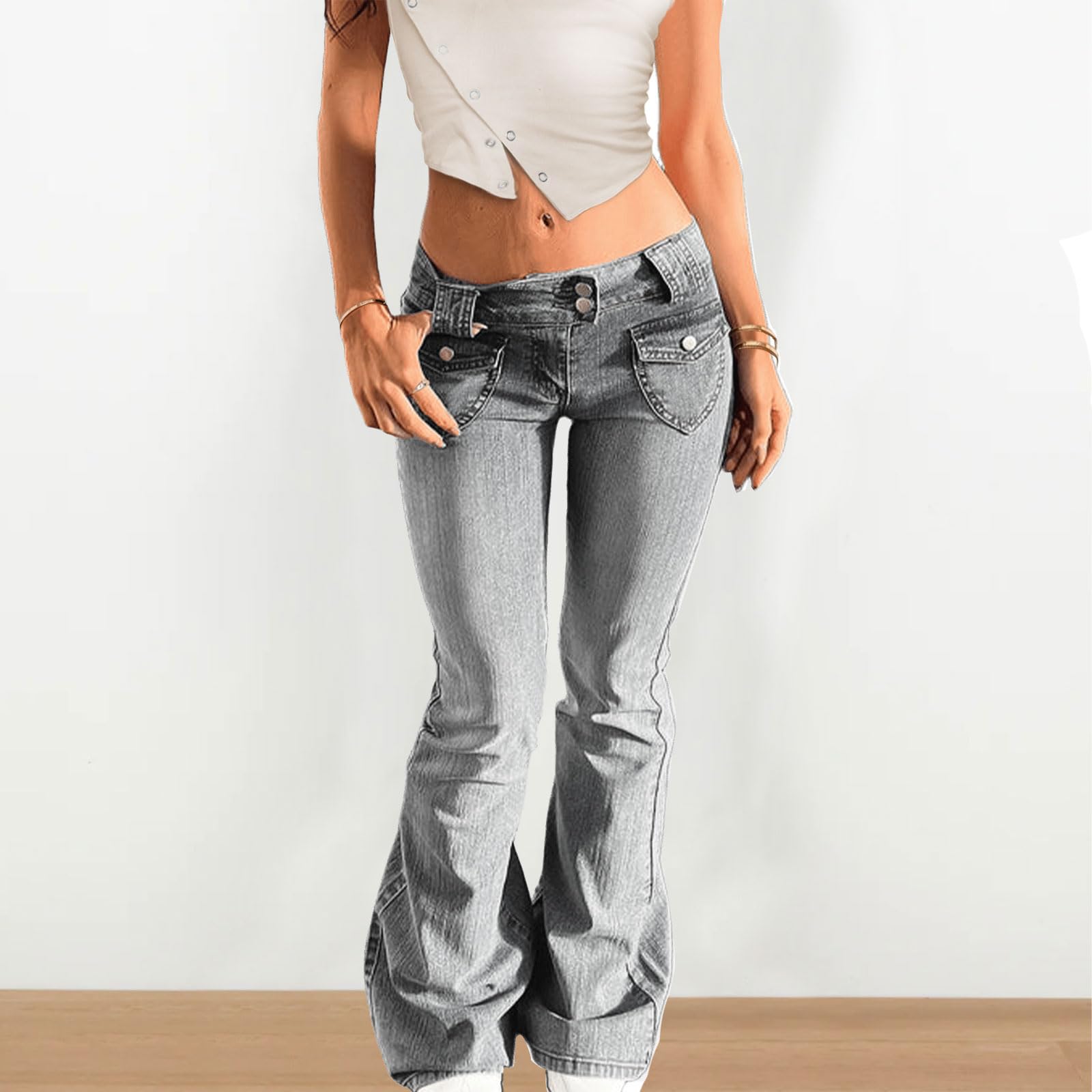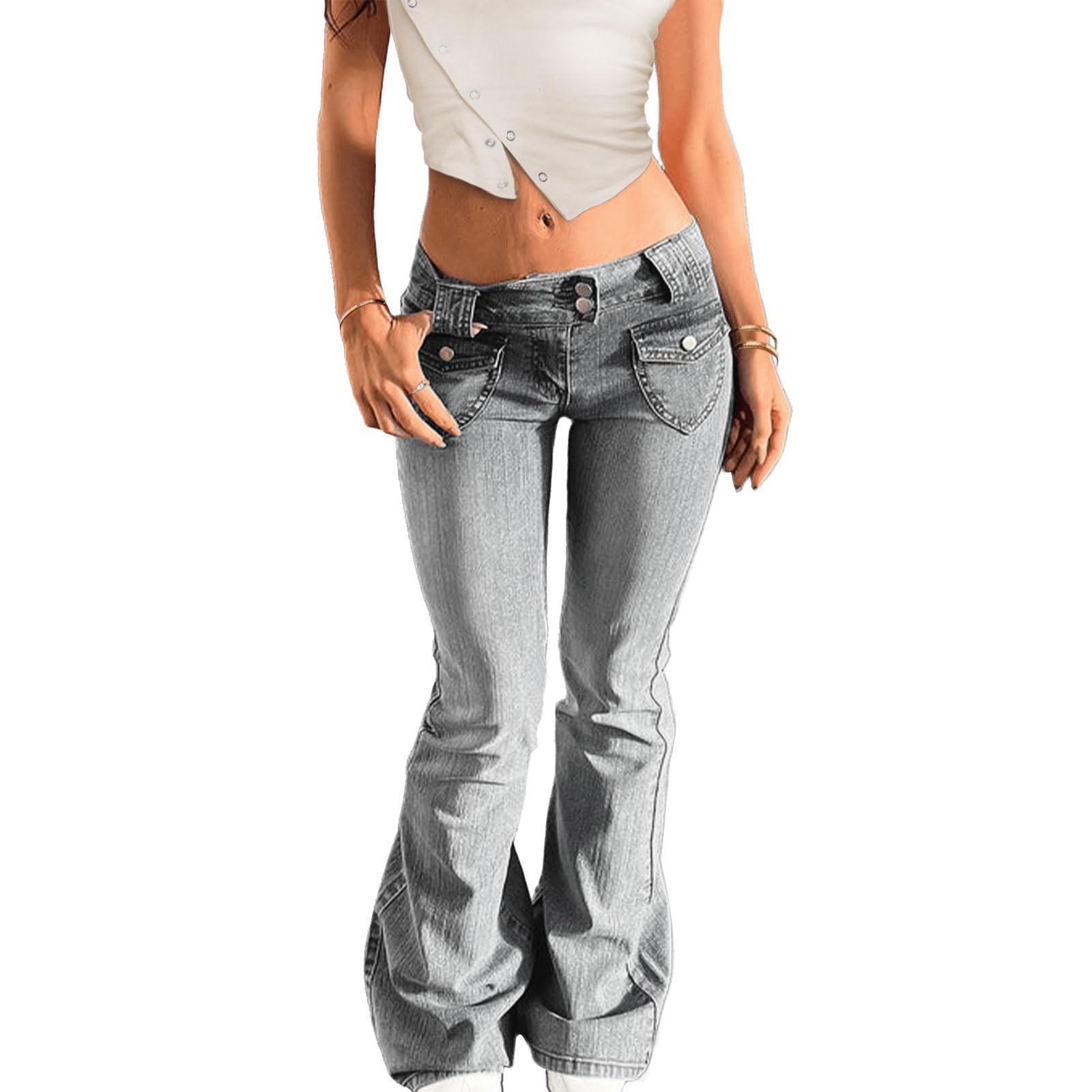 - Features: Low waisted bootcut jeans for women, flare leg, belt loops, button down, surper low rise slim fit jeans, washed denim pants with flap pockets. Full length baggy jeans for teen girls, y2k streetwear.